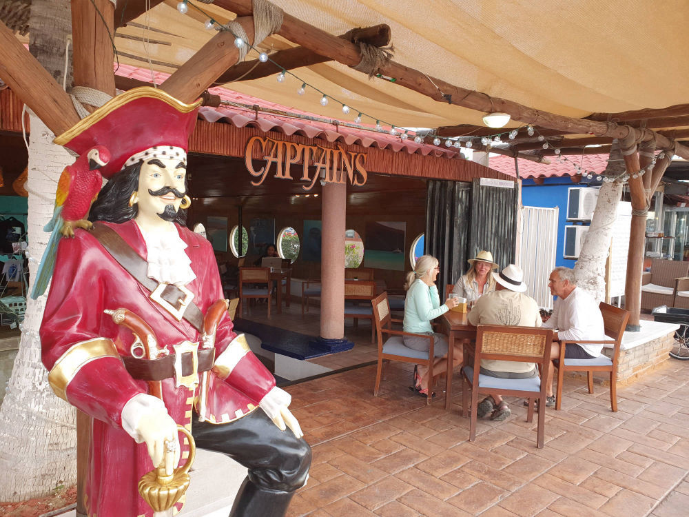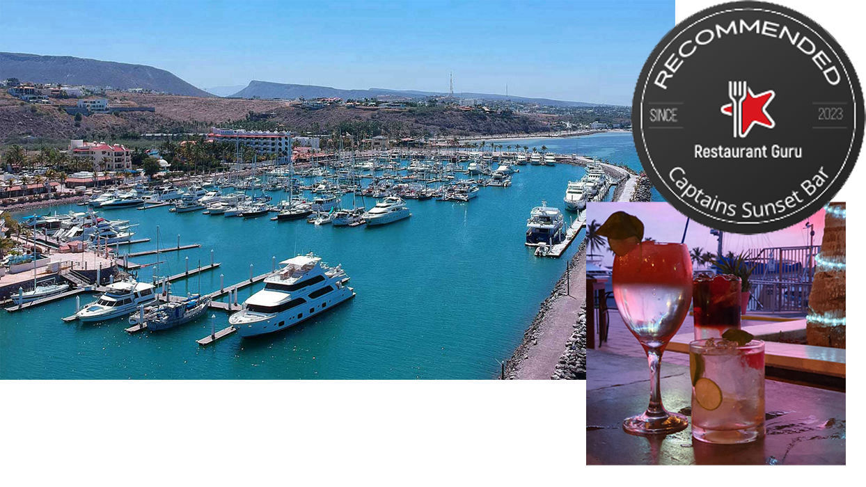 Captains Sunset Bar & Thai Restaurant, a Baja Charters hang-out, is on Marina Palmira, facing directly on to the bay of La Paz. A sports bar for locals, yachties, and ex-pats. Super friendly, great drinks and food with killer sunsets.