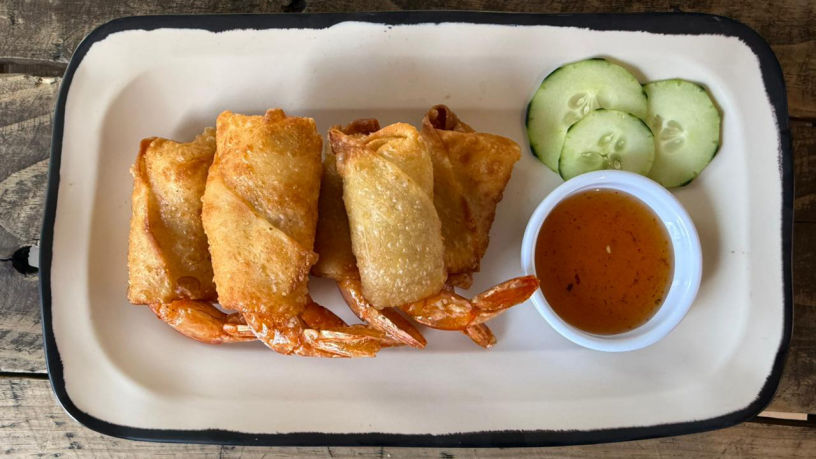 Order of 5 spring rolls with pork, beef, and vegetables with a touch of green curry.